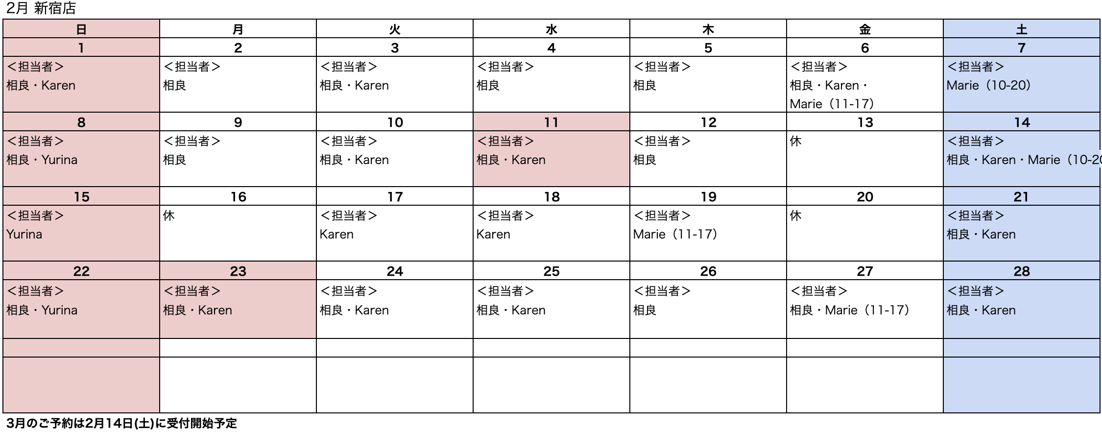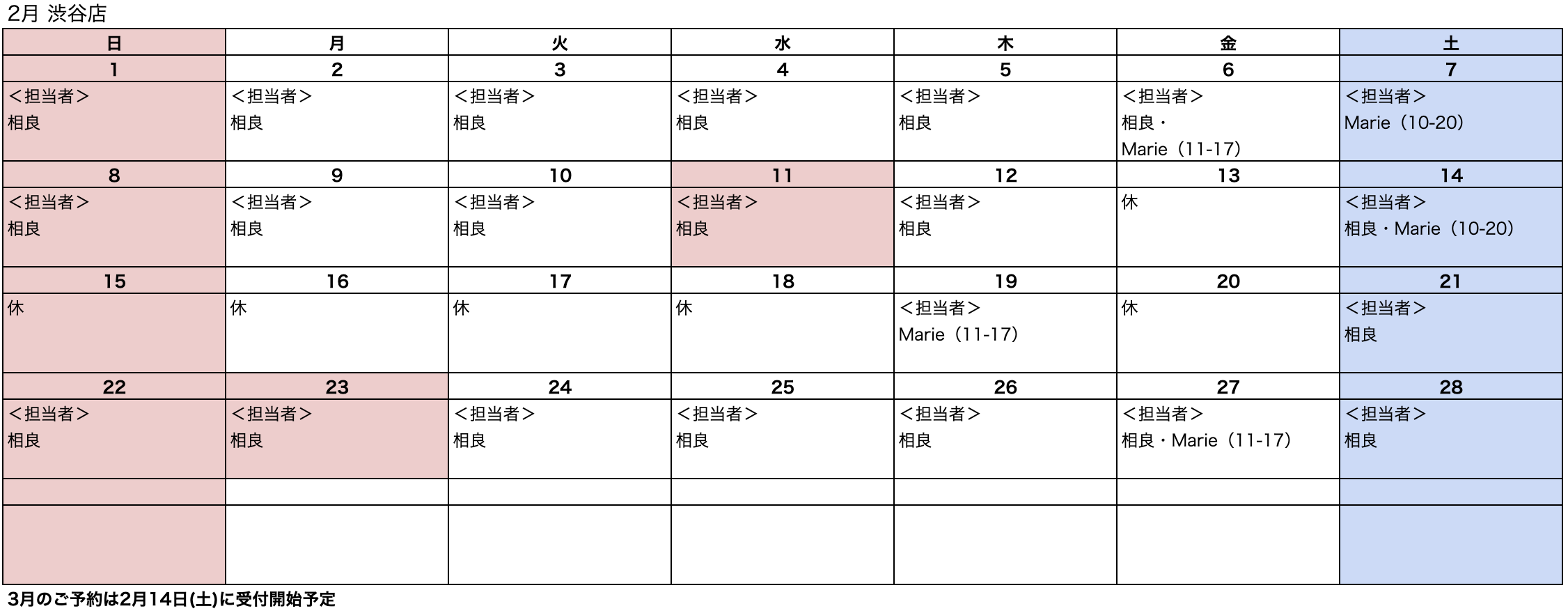 2月のご予約受付を開始しました。ご予約をご検討されている方でご希望の日程がない場合はキャンセル待ちLINEへご登録してお待ちください。